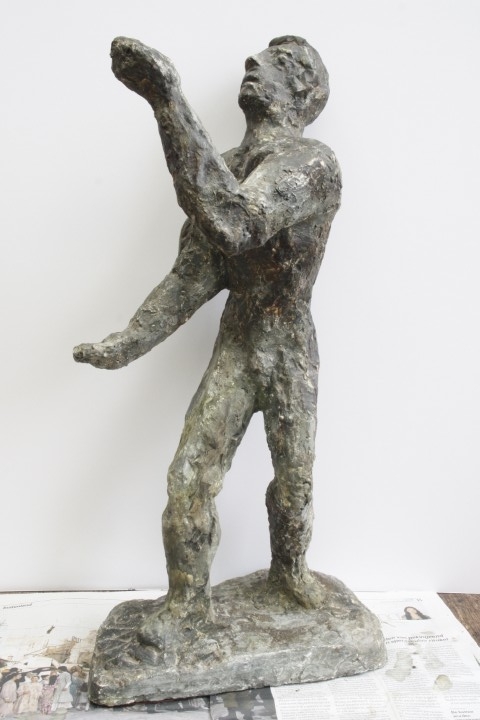 Deze kleine voorstudie van “De Houtwerker”, gemaakt van gips (hoogte 65 cm), was gevallen en diverse stukken waren afgebroken en/of versplinterd.